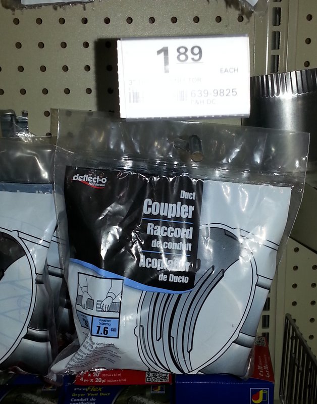 - 3″ Duct Coupler (Should be near the flexible duct) [Expected Price $1.89]